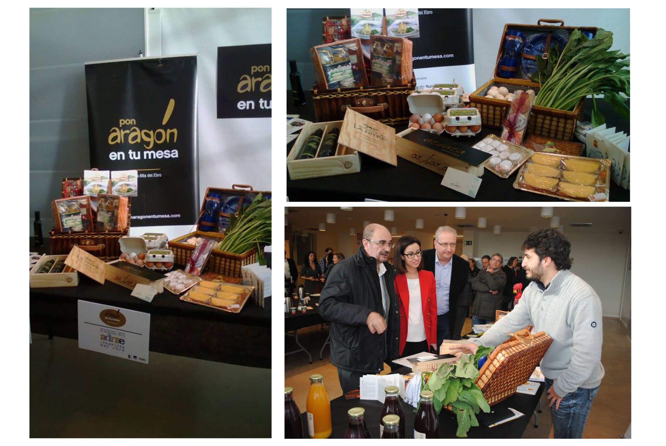 Para sumarnos a este aniversario, desde ADRAE hemos puesto nuestro granito de arena con un vistoso stand para representar a la comarca de la Ribera Alta del Ebro. Una representación de los productos agroalimentarios de nuestra zona como la borraja de Alagón (Juan José Cerrada Viar), el aceite de oliva virgen extra La Nitre de Gallur (SAT núm 9391 Monteblanco de Bárboles), el champiñón de Alagón (José Luis y Jonathan López Duboid), los huevos camperos Tejero de Alcalá de Ebro (José Miguel Tejero), los doblones del salmón de Alagón (Pastelería Riba), el aceite de oliva virgen Arbara (SAT número 5 El Cierzo de Luceni), las conservas gourmet (Industrias Coquet S.L, Gallur) y los turrones artesanos y tortillas de Alagón del maestro pastelero Francisco Riba de Alagón.